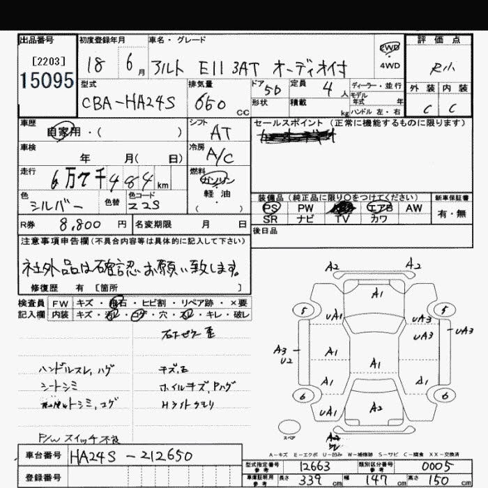 Год выпуска2006 Пробег 67 000 км КузовHA24S КомплектацияE II 3AT WITH AUDIO