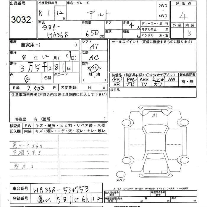 Год выпуска2019 Пробег 35 000 км КузовHA36S