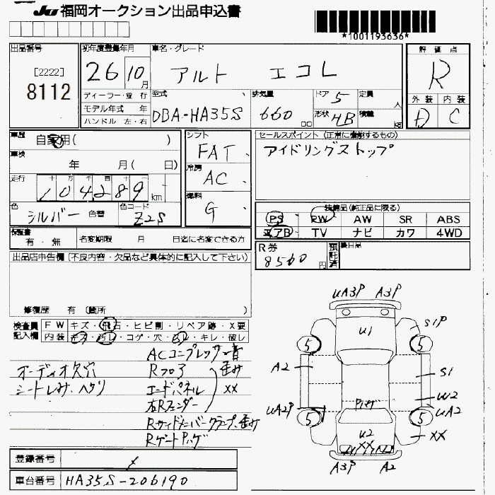 Статус продан Лот 8112 Аукцион JU Fukuoka Дата аукциона 07.11.2025