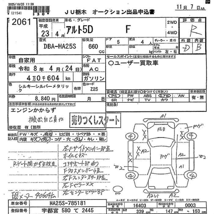 Статус продан Лот 2061 Аукцион JU Tochigi Дата аукциона 07.11.2025