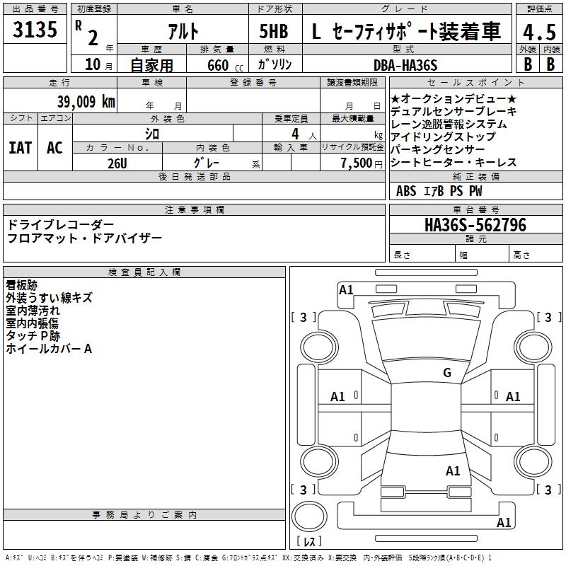 Год выпуска2020 Пробег 39 000 км КузовHA36S КомплектацияL SAFETY SUPPORT SOU TEA K CAR