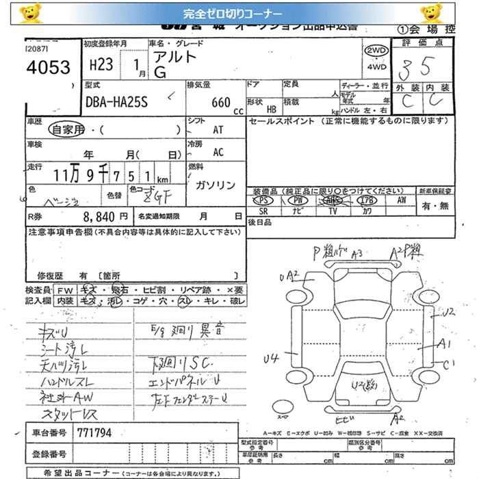 Год выпуска2011 Пробег 120 000 км КузовHA25S КомплектацияG