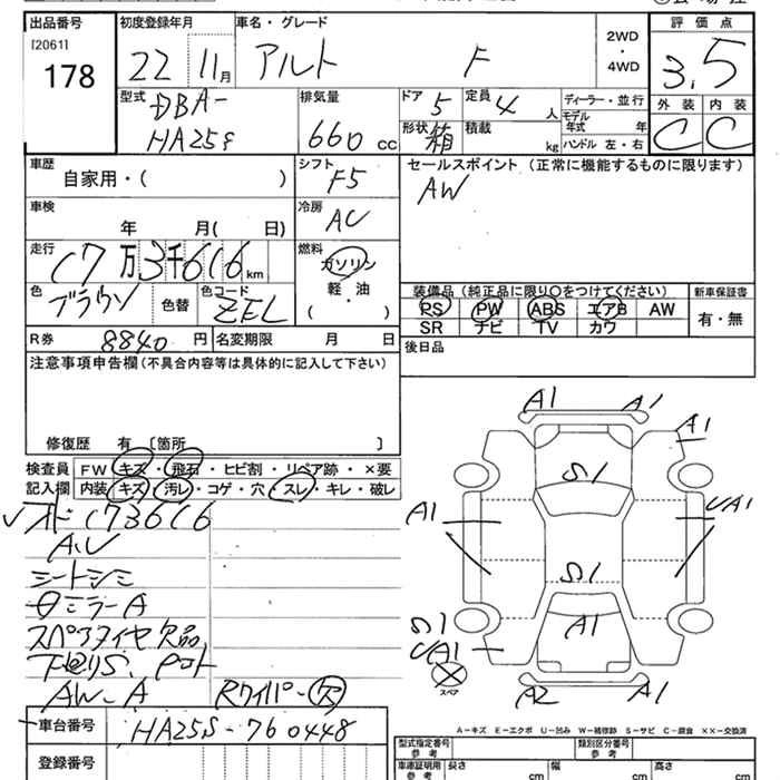 Год выпуска2010 Пробег 174 000 км КузовHA25S КомплектацияF