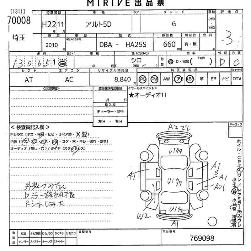 Год выпуска2010 Пробег 131 000 км КузовHA25S КомплектацияG