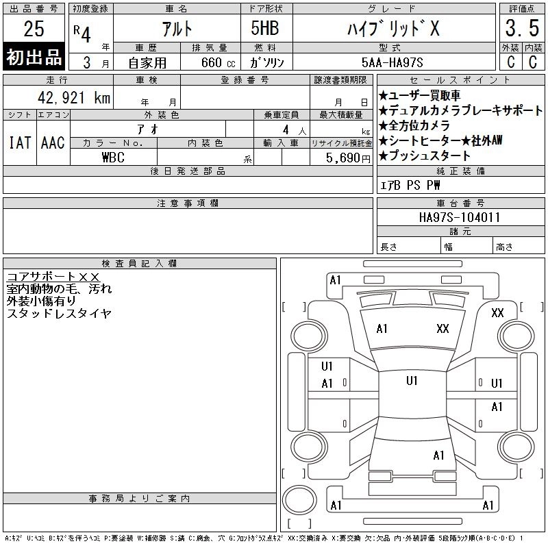 Год выпуска2022 Пробег 43 000 км КузовHA97S Комплектация HYBRID X