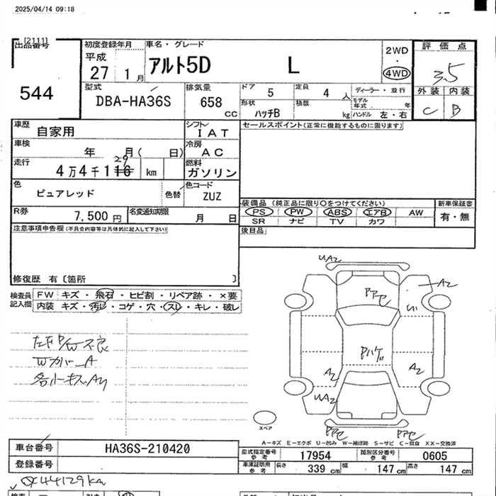 Год выпуска2015 Пробег 44 000 км КузовHA36S Комплектация4WD L