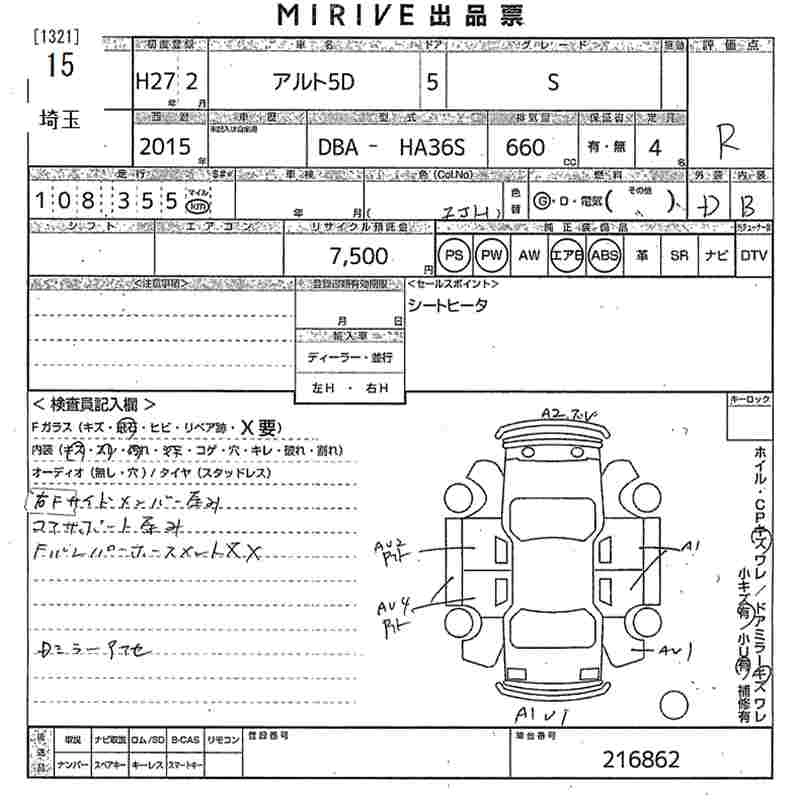 Статус выставлен на аукцион Лот 15 Аукцион MIRIVE Saitama Дата аукциона 11.03.2026