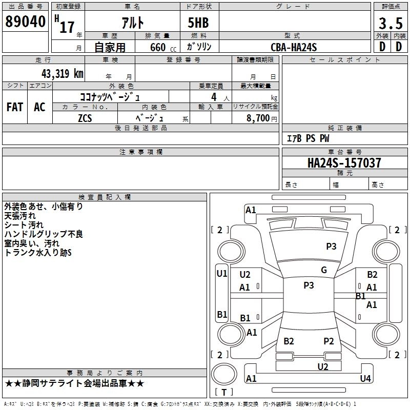 Статус выставлен на аукцион Лот 89040 Аукцион TAA Chubu Дата аукциона 12.03.2026