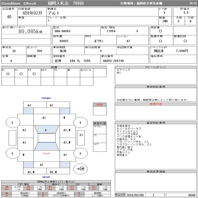 Статус выставлен на аукцион Лот 40 Аукцион ORIX Fukuoka Дата аукциона 10.03.2026