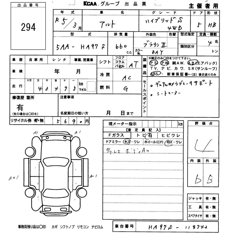 Статус не продан Лот 294 Аукцион KCAA Fukuoka Дата аукциона 12.03.2026