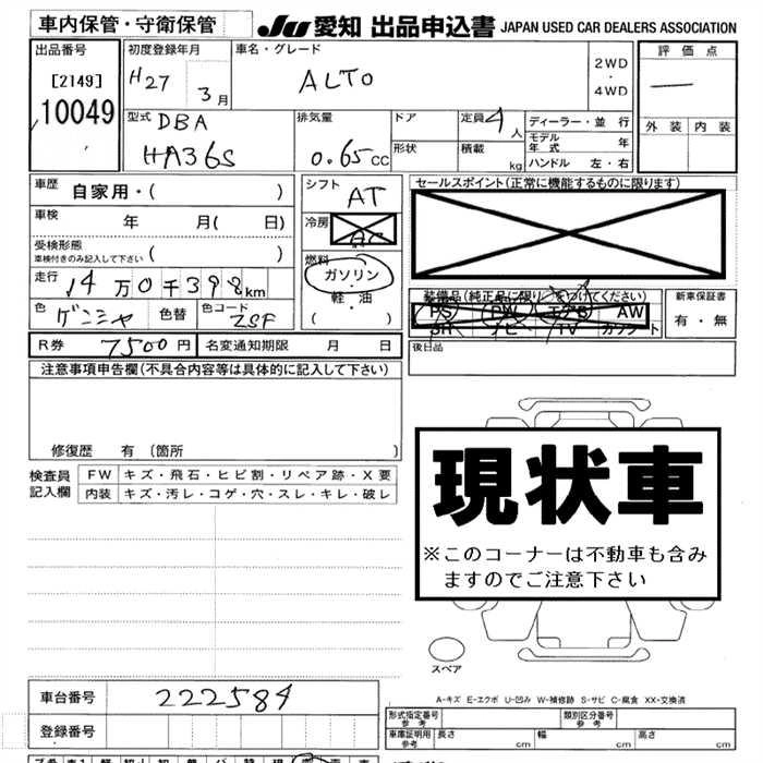 Статус выставлен на аукцион Лот 10049 Аукцион JU Aichi Дата аукциона 12.03.2026