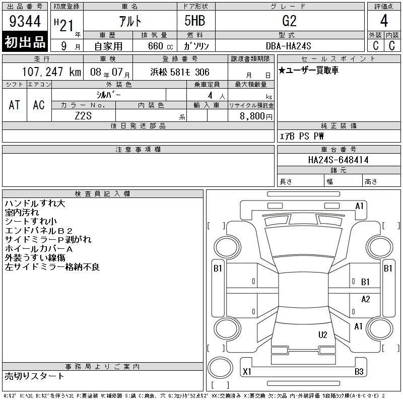 Год выпуска2009 Пробег 107 000 км КузовHA24S КомплектацияG2