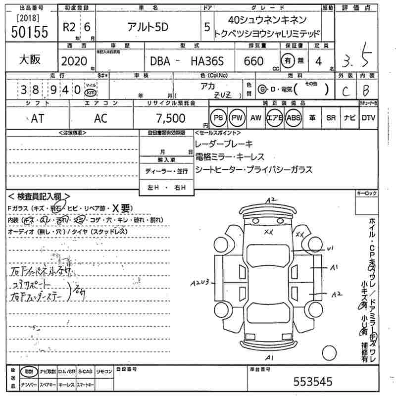 Год выпуска2020 Пробег 39 000 км КузовHA36S Комплектация40 ANNIVERSARY MEMORY SPECIAL RESOURCE CAR L LIMITED