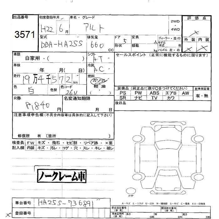 Год выпуска2010 Пробег 195 000 км КузовHA25S