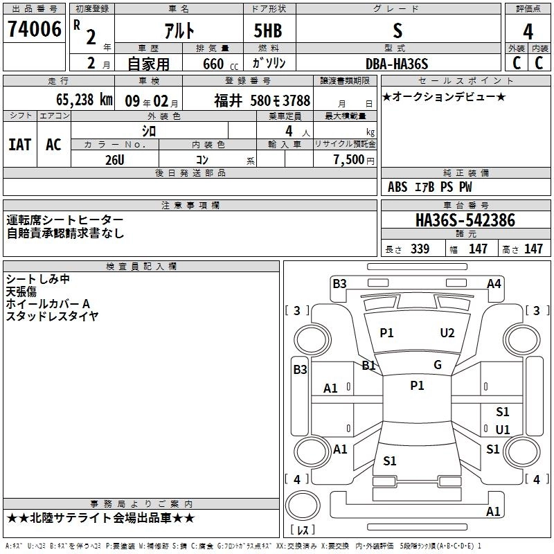 Статус выставлен на аукцион Лот 74006 Аукцион TAA Chubu Дата аукциона 19.03.2026