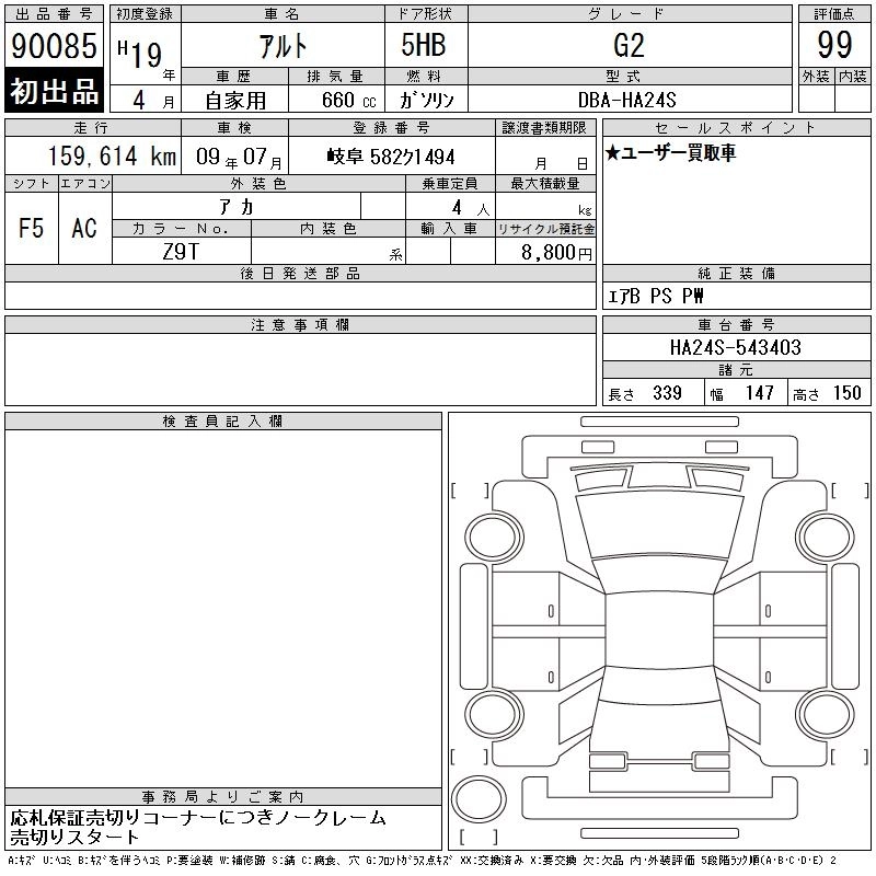 Статус выставлен на аукцион Лот 90085 Аукцион CAA Gifu Дата аукциона 17.03.2026