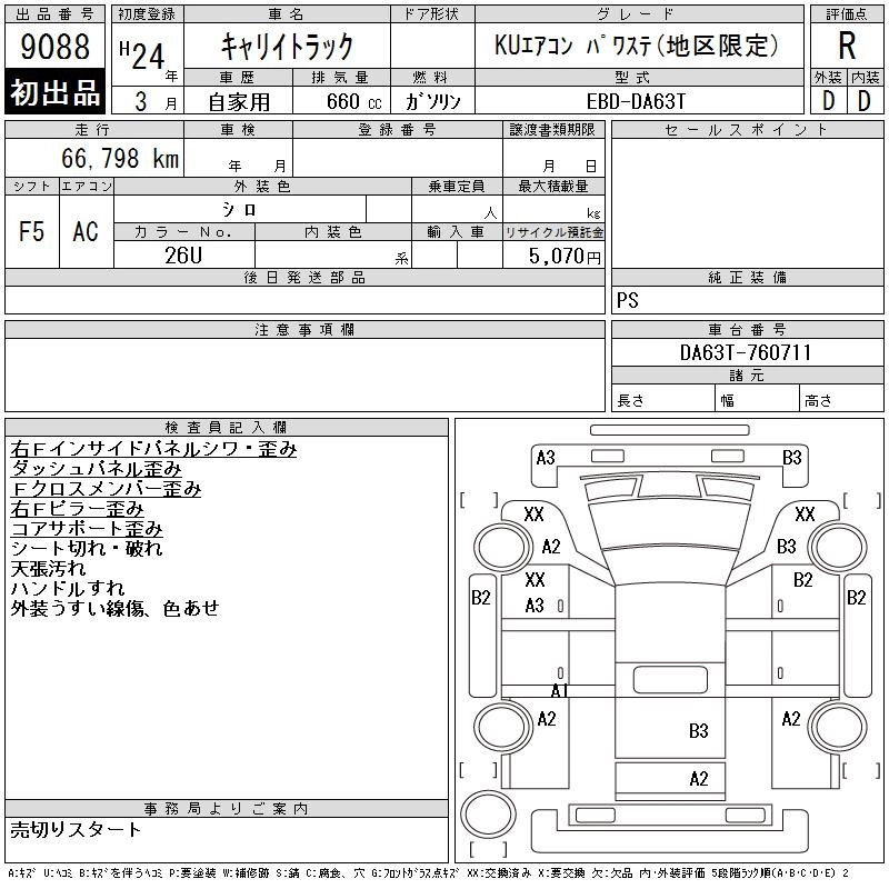 67 000 км КузовDA63T КомплектацияKU AIR CONDITIONER POWER STEERING ( AREA LIMITATION