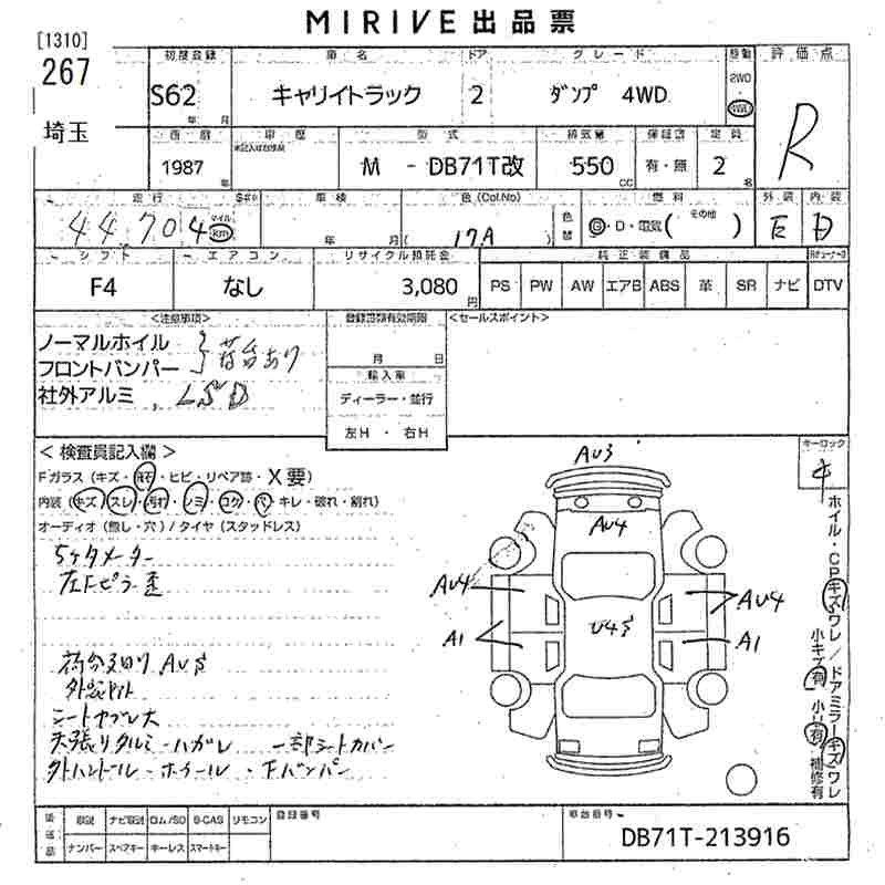Статус выставлен на аукцион Лот 267 Аукцион MIRIVE Saitama Дата аукциона 17.12.2025