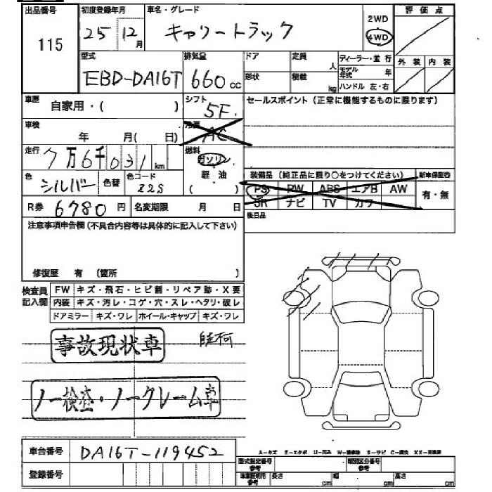 SUZUKI CARRY TRUCK 2013 г., лот № 115