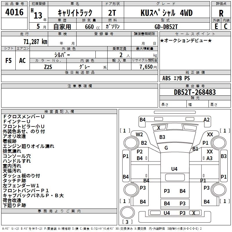 Год выпуска2001 Пробег 71 000 км КузовDB52T КомплектацияKU SPECIAL 4WD