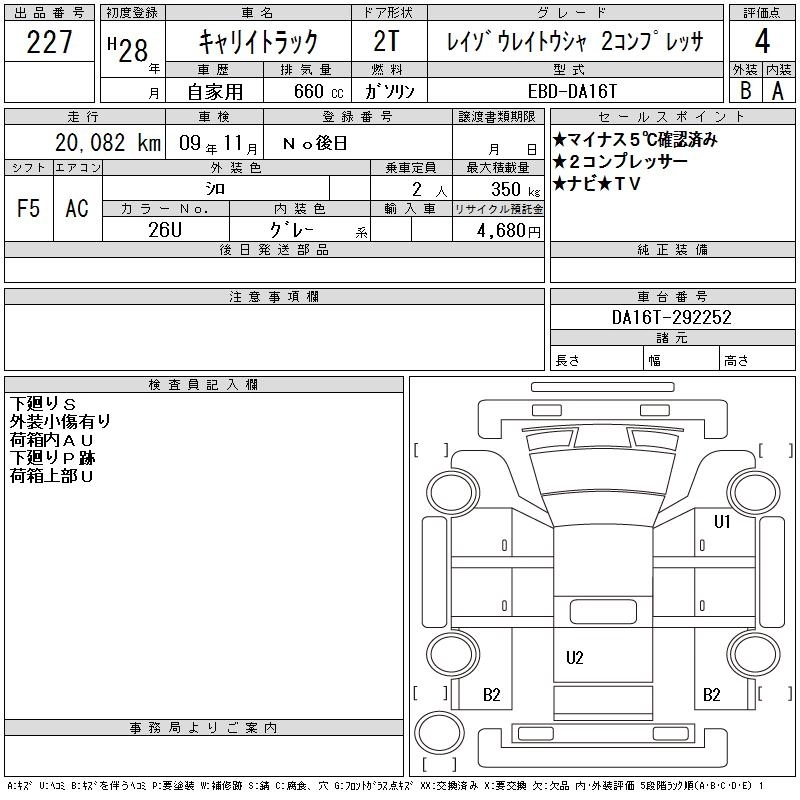 SUZUKI CARRY TRUCK 2016 г., лот № 227