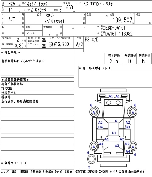 Год выпуска2013 Пробег 190 000 км КузовDA16T КомплектацияKC AIR CONDITIONER * POWER STEERING