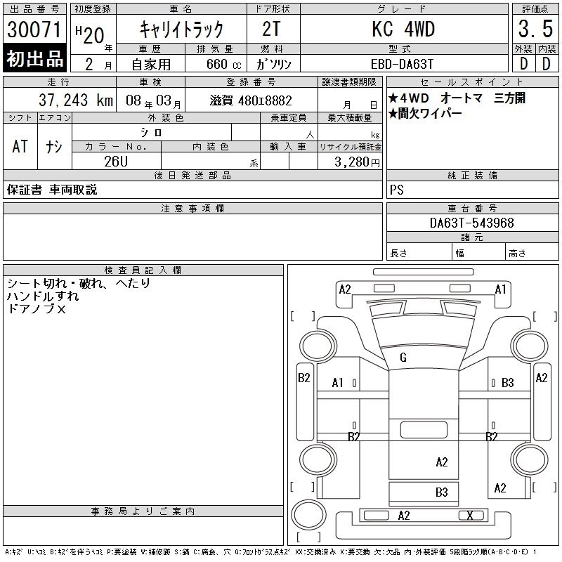 Год выпуска2008 Пробег 37 000 км КузовDA63T КомплектацияKC 4WD