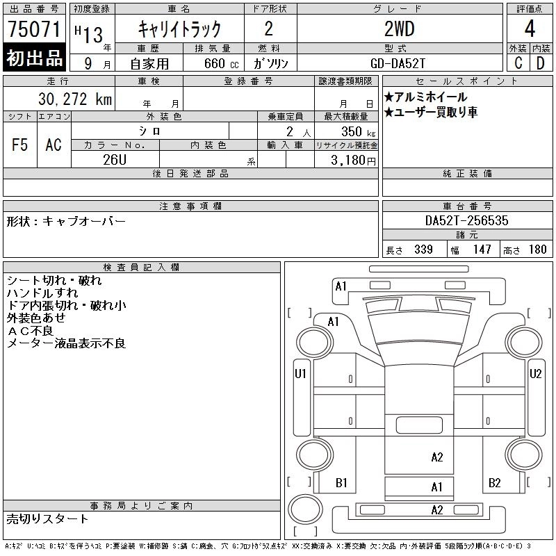 Год выпуска2001 Пробег 30 000 км КузовDA52T Комплектация2WD
