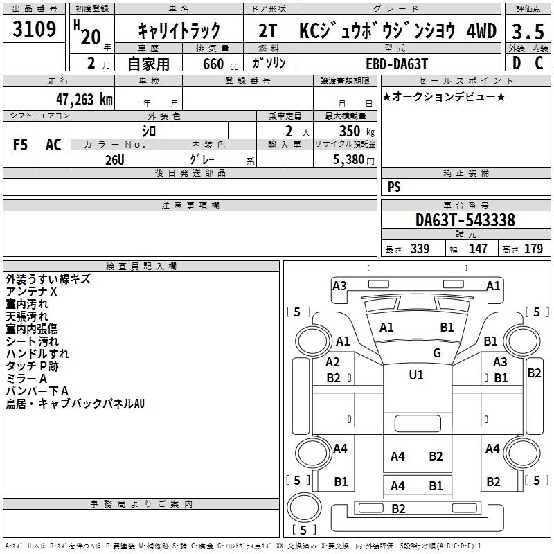 47 000 км КузовDA63T КомплектацияKC AIR CONDITIONER * POWER STEERING 4WD
