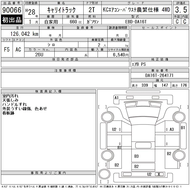 126 000 км КузовDA16T КомплектацияKC AIR CONDITIONER * POWER STEERING NOUHAN 4WD