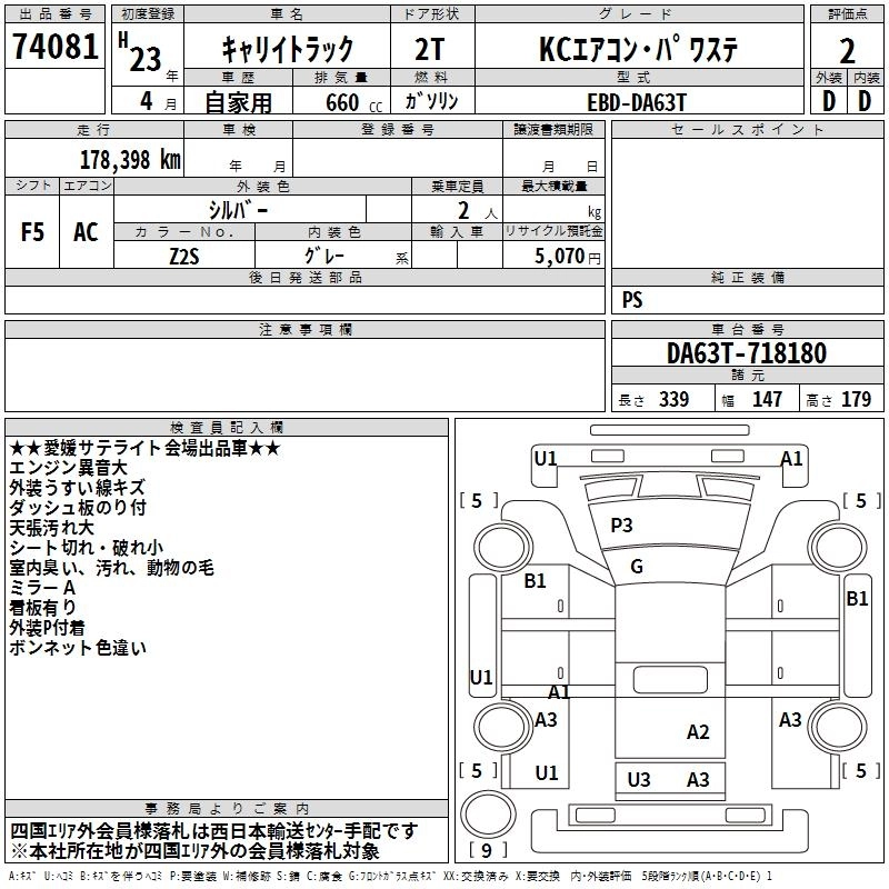Статус выставлен на аукцион Лот 74081 Аукцион TAA Shikoku Дата аукциона 10.03.2026
