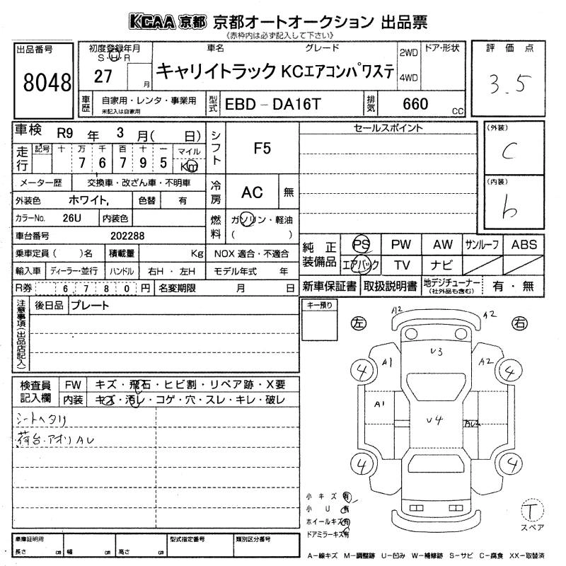 Год выпуска2015 Пробег 77 000 км КузовDA16T КомплектацияKC AIR CONDITIONER * POWER STEERING
