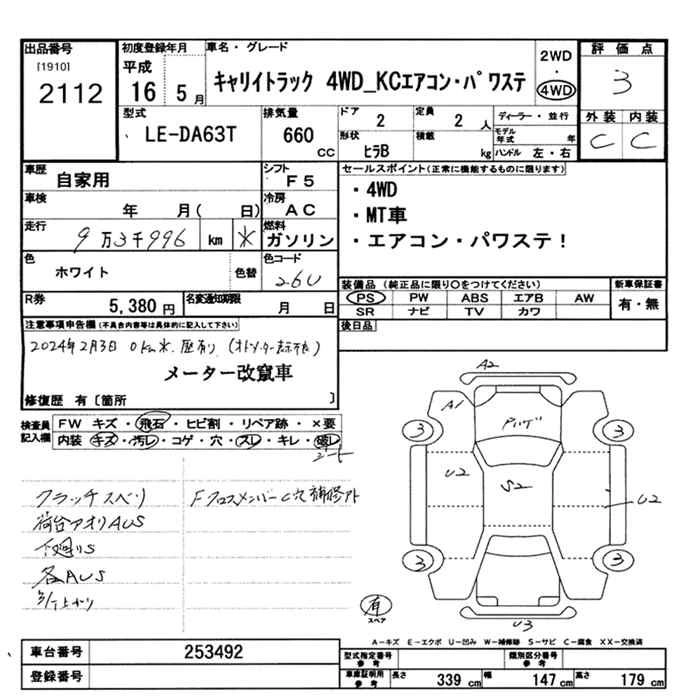 94 000 км КузовDA63T Комплектация4WD KC AIR CONDITIONER - POWER STEERING