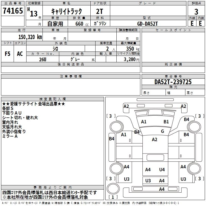 Статус выставлен на аукцион Лот 74165 Аукцион TAA Shikoku Дата аукциона 10.03.2026