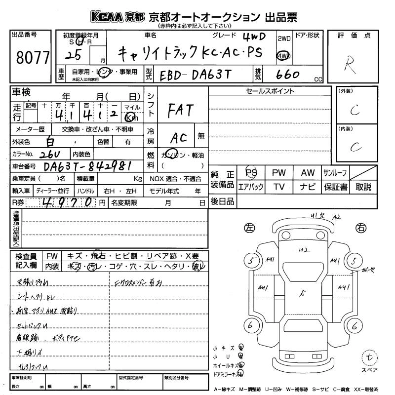 41 000 км КузовDA63T КомплектацияKC AIR CONDITIONER * POWER STEERING 4WD