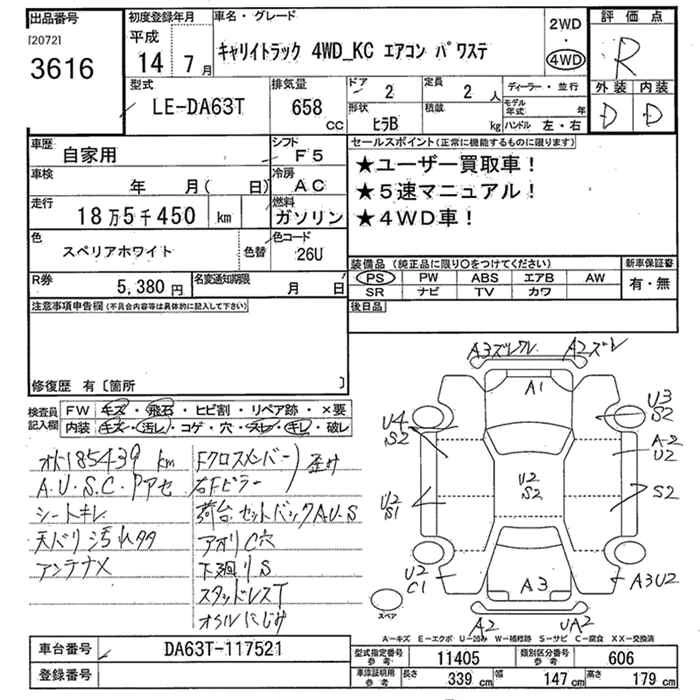 185 000 км КузовDA63T Комплектация4WD KC AIR CONDITIONER - POWER STEERING