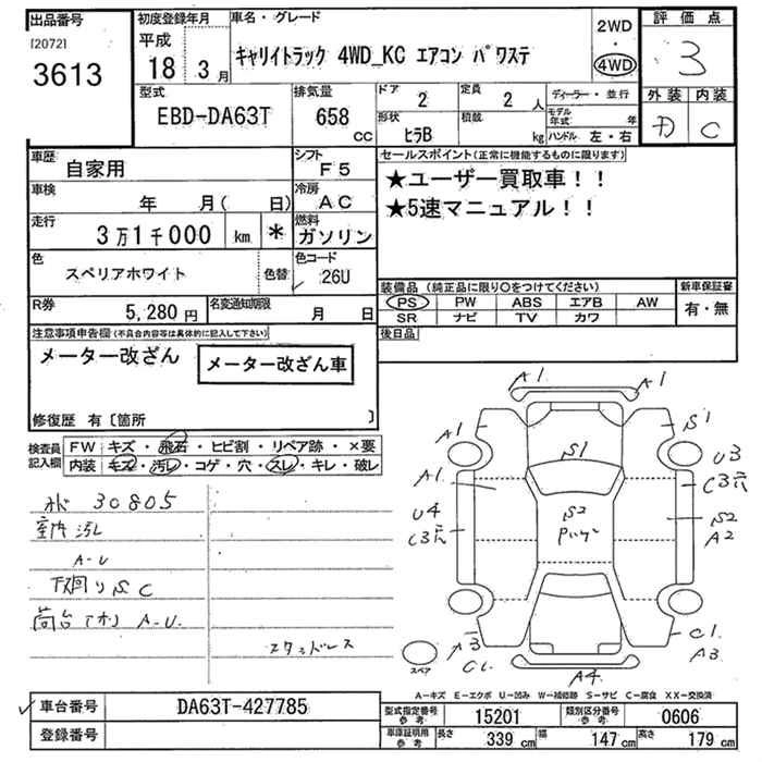 31 000 км КузовDA63T Комплектация4WD KC AIR CONDITIONER - POWER STEERING