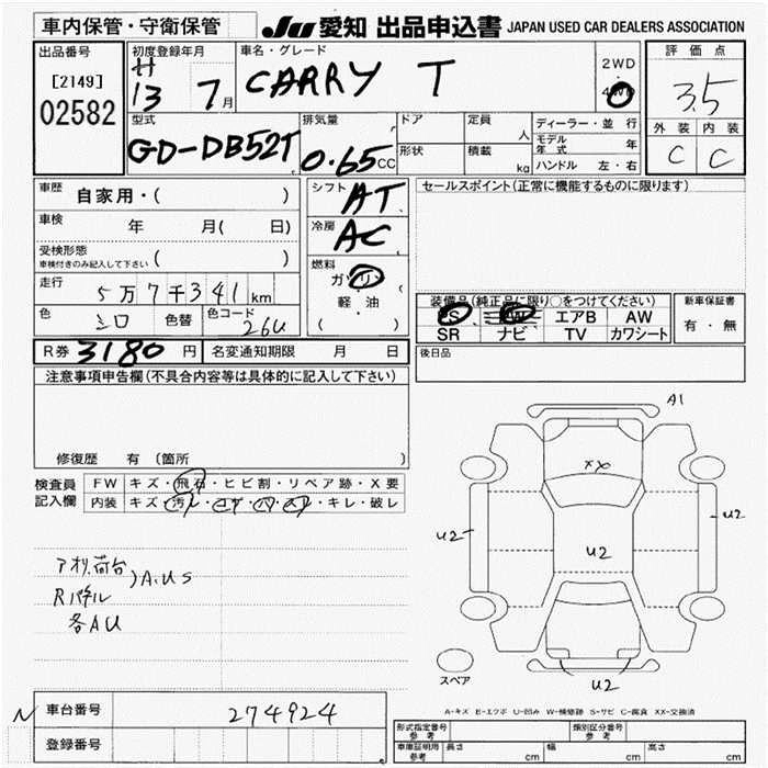 Статус выставлен на аукцион Лот 2582 Аукцион JU Aichi Дата аукциона 12.03.2026
