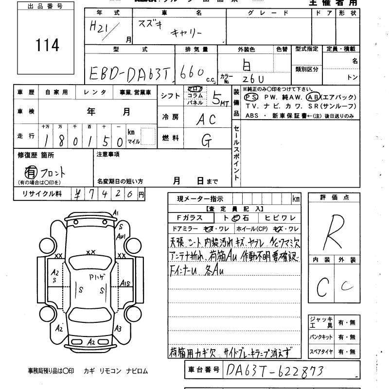 SUZUKI CARRY TRUCK 2009 г., лот № 114