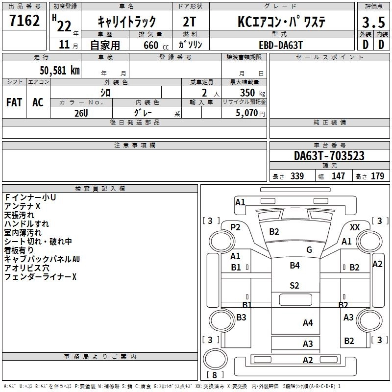 Год выпуска2010 Пробег 51 000 км КузовDA63T КомплектацияKC AIR CONDITIONER * POWER STEERING