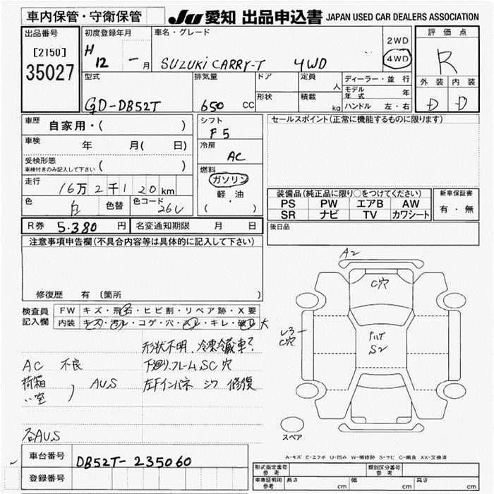 Статус выставлен на аукцион Лот 35027 Аукцион JU Aichi Дата аукциона 19.03.2026