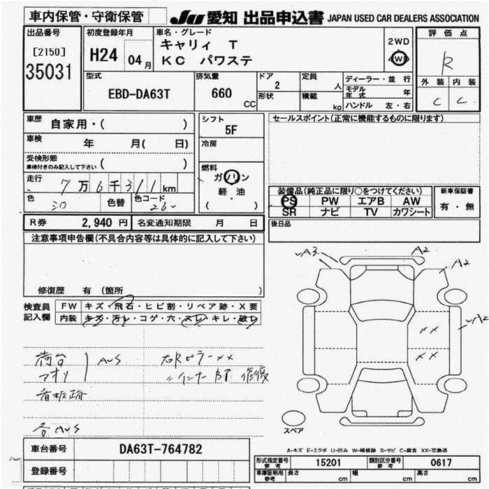 Год выпуска2012 Пробег 76 000 км КузовDA63T КомплектацияKU POWER STEERING 4WD
