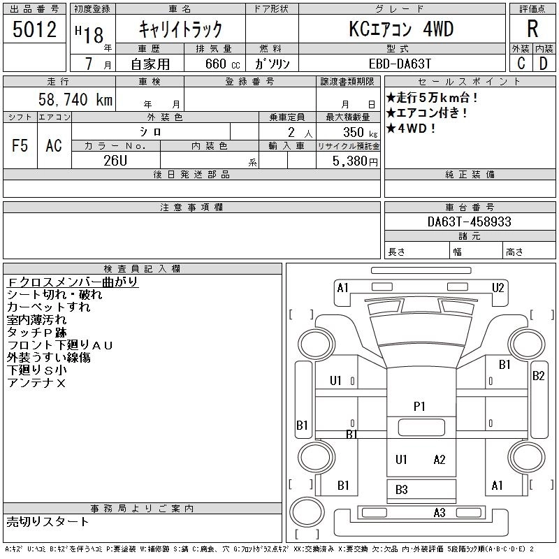 Год выпуска2006 Пробег 59 000 км КузовDA63T КомплектацияKC AIR CONDITIONER 4WD