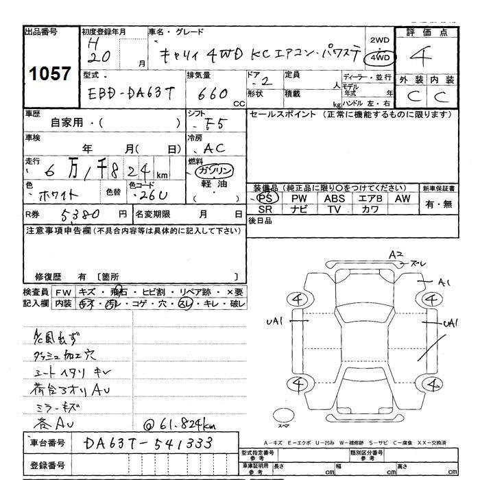 Год выпуска2008 Пробег 62 000 км КузовDA63T Комплектация4WD KC AIR CONDITIONER - POWER STEERING