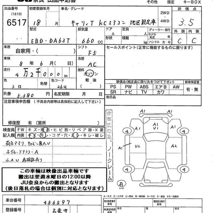 Год выпуска2006 Пробег 42 000 км КузовDA63T КомплектацияKC AIR CONDITIONER AREA LIMITATION CAR