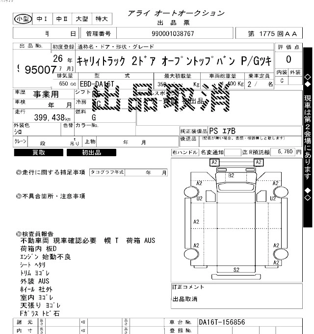 SUZUKI CARRY 2014 г., лот № 95007