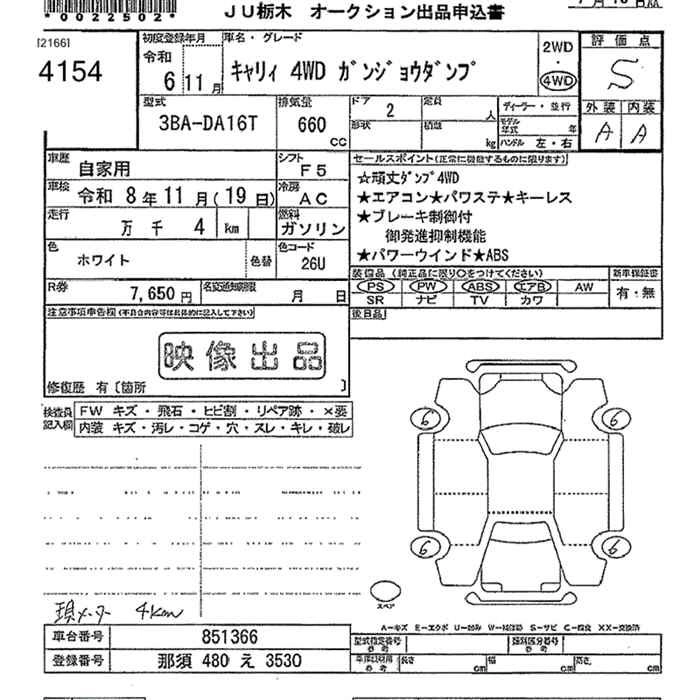 Статус не продан Лот 4154 Аукцион JU Tochigi Дата аукциона 06.02.2026