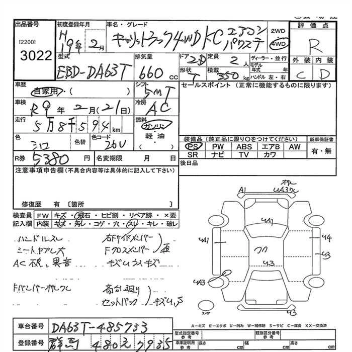 59 000 км КузовDA63T Комплектация4WD KC AIR CONDITIONER - POWER STEERING
