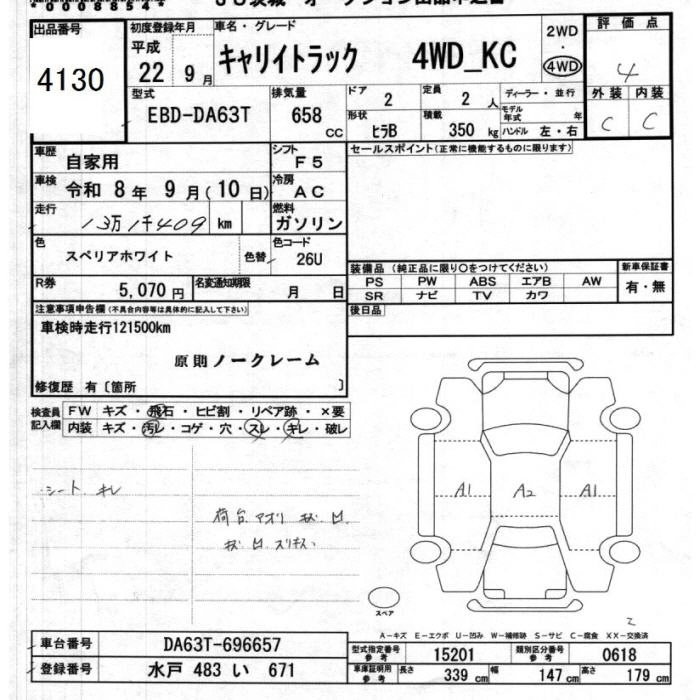 Статус выставлен на аукцион Лот 4130 Аукцион JU Ibaraki Дата аукциона 11.03.2026