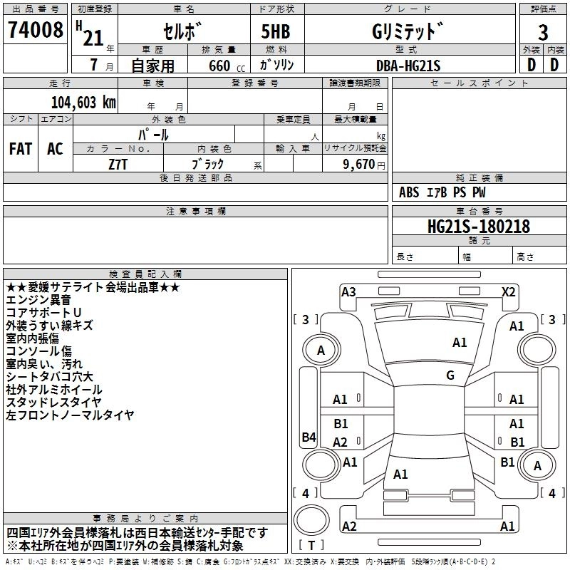 Статус выставлен на аукцион Лот 74008 Аукцион TAA Shikoku Дата аукциона 10.03.2026